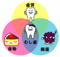 プラークは同時に細菌の住みかとなり、プラークの中のストレプトコッカスミュータンスが糖質を自己の栄養として利用するため分解し、その代謝産物として酸が産生され、その酸によって歯が溶かされてしまうのが虫歯です。